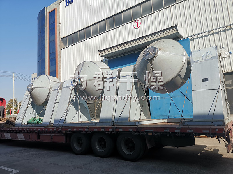 三臺雙錐回轉真空干燥機裝車發貨
